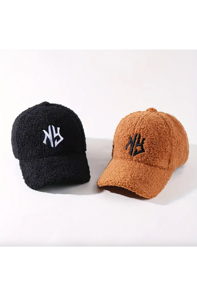 NY Embroidery Winter Baseball Cap for Women & Men - Soft, Lightweight, Adjustable Fit, Warm Solid Color Travel Hat with Hook-and-Loop Closure, Plush Texture.