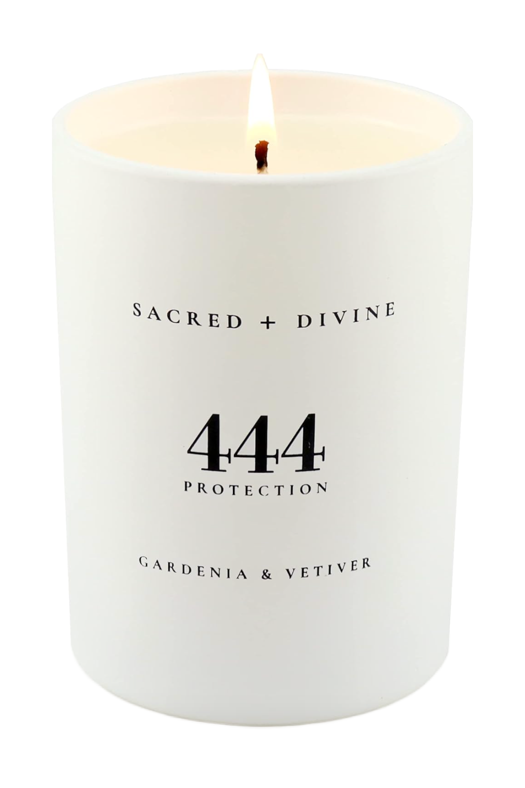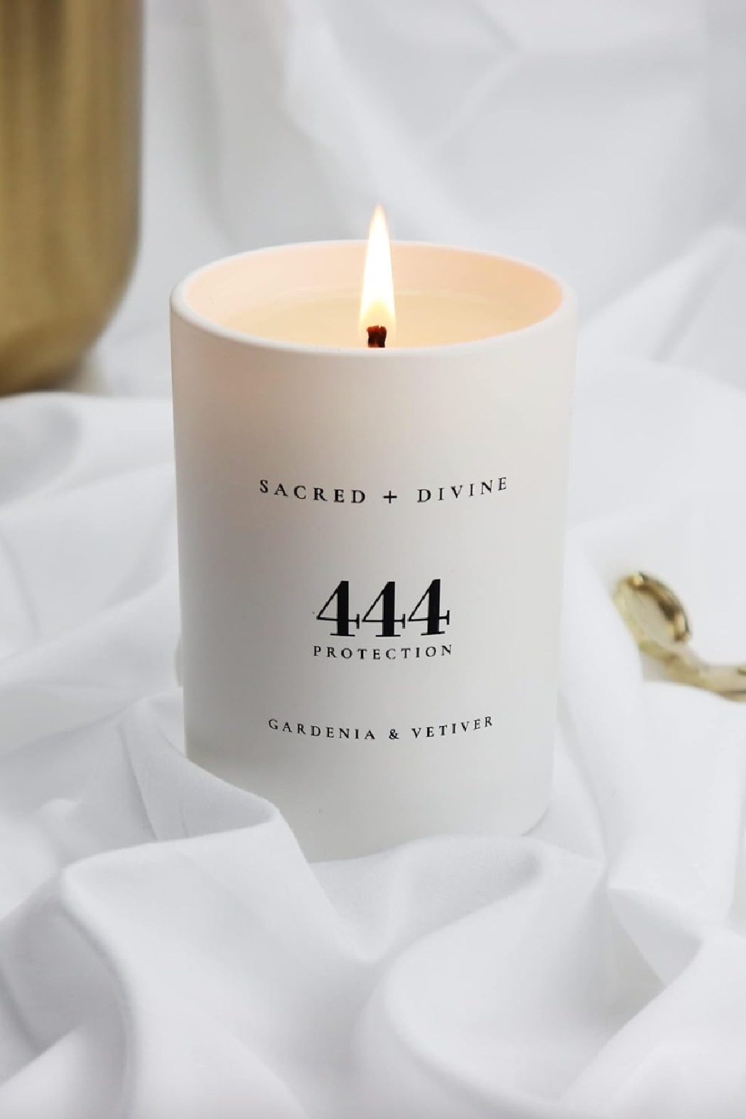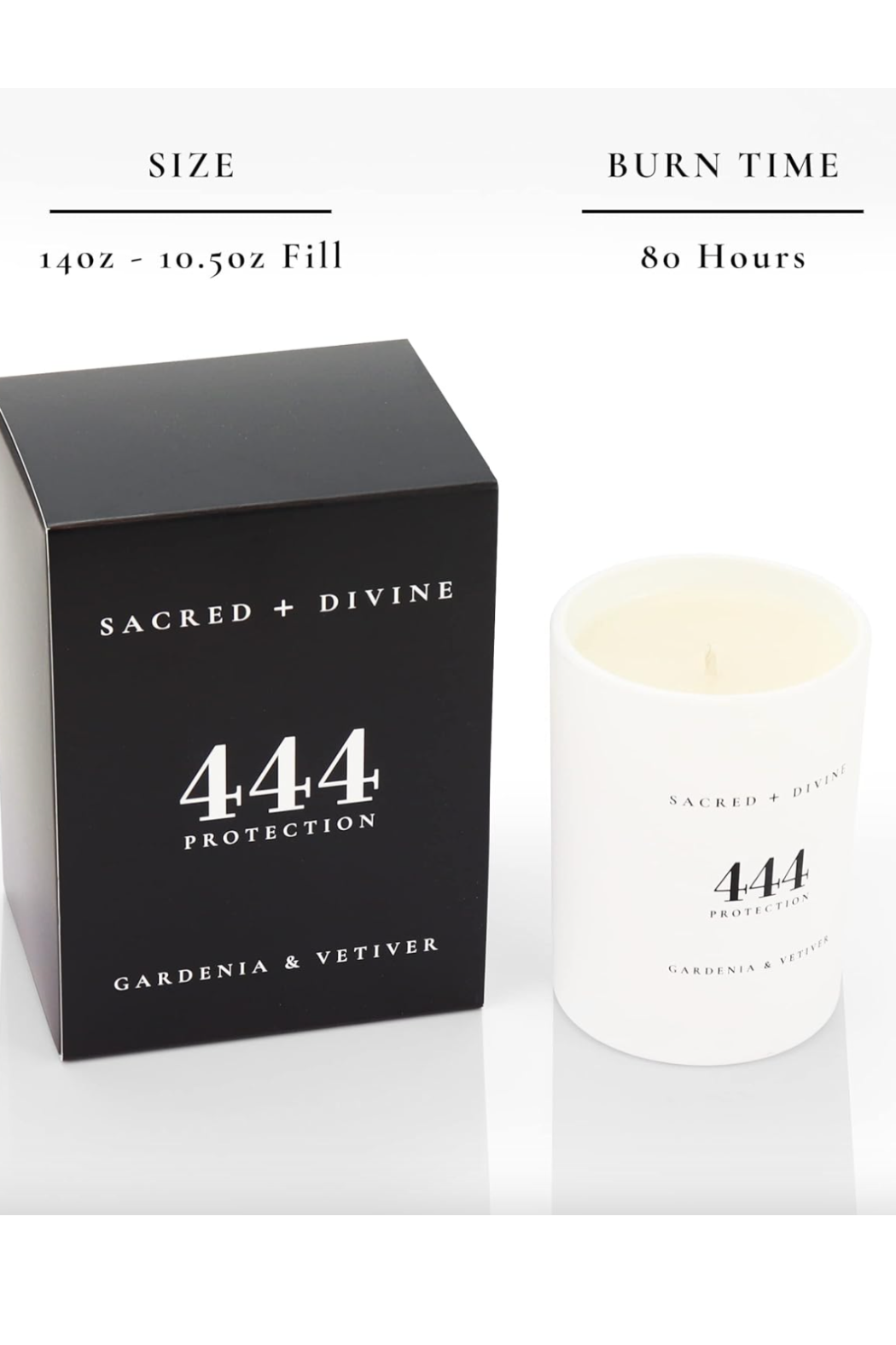 444 Protection Scented Intention Candle, Gardenia and Vetiver