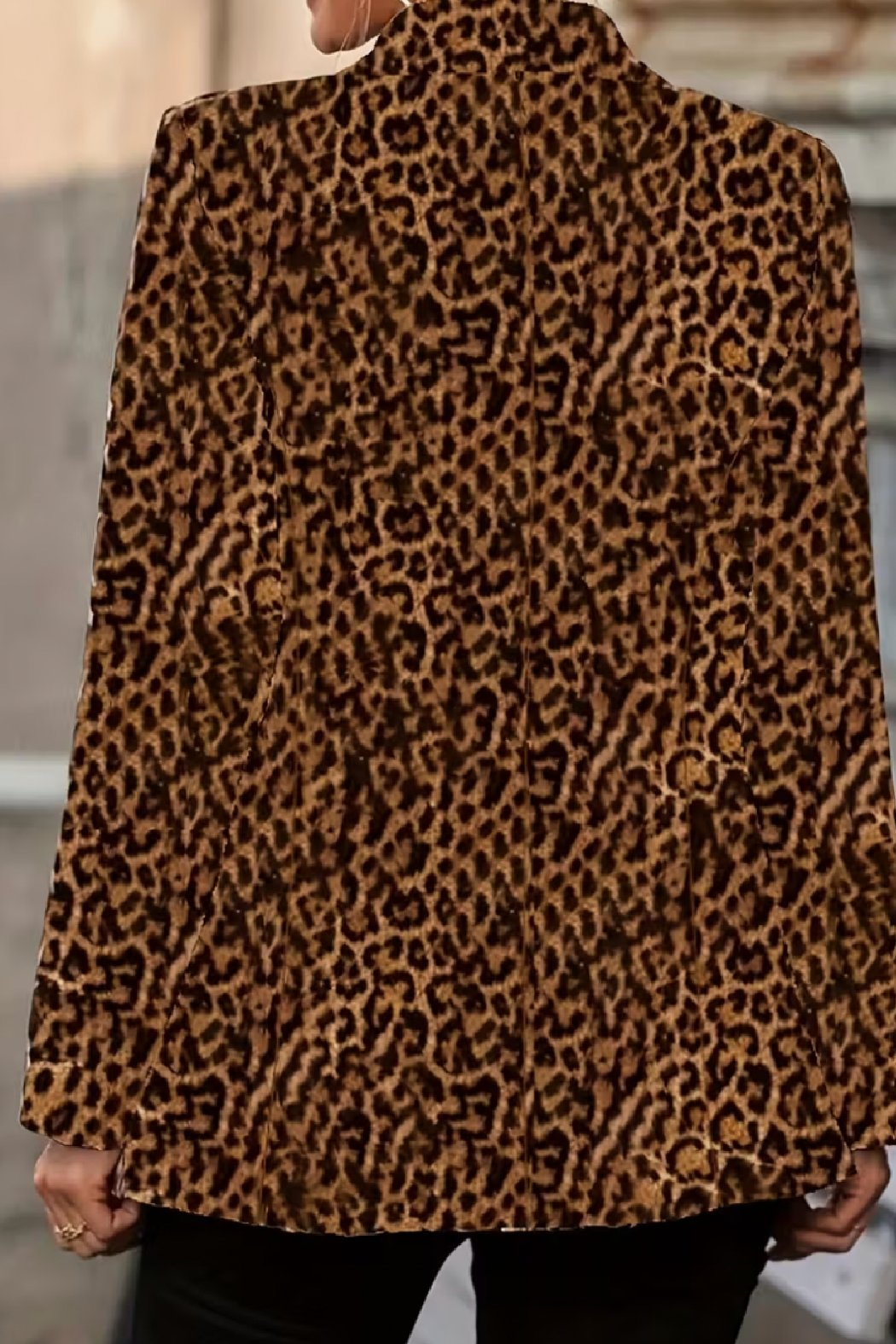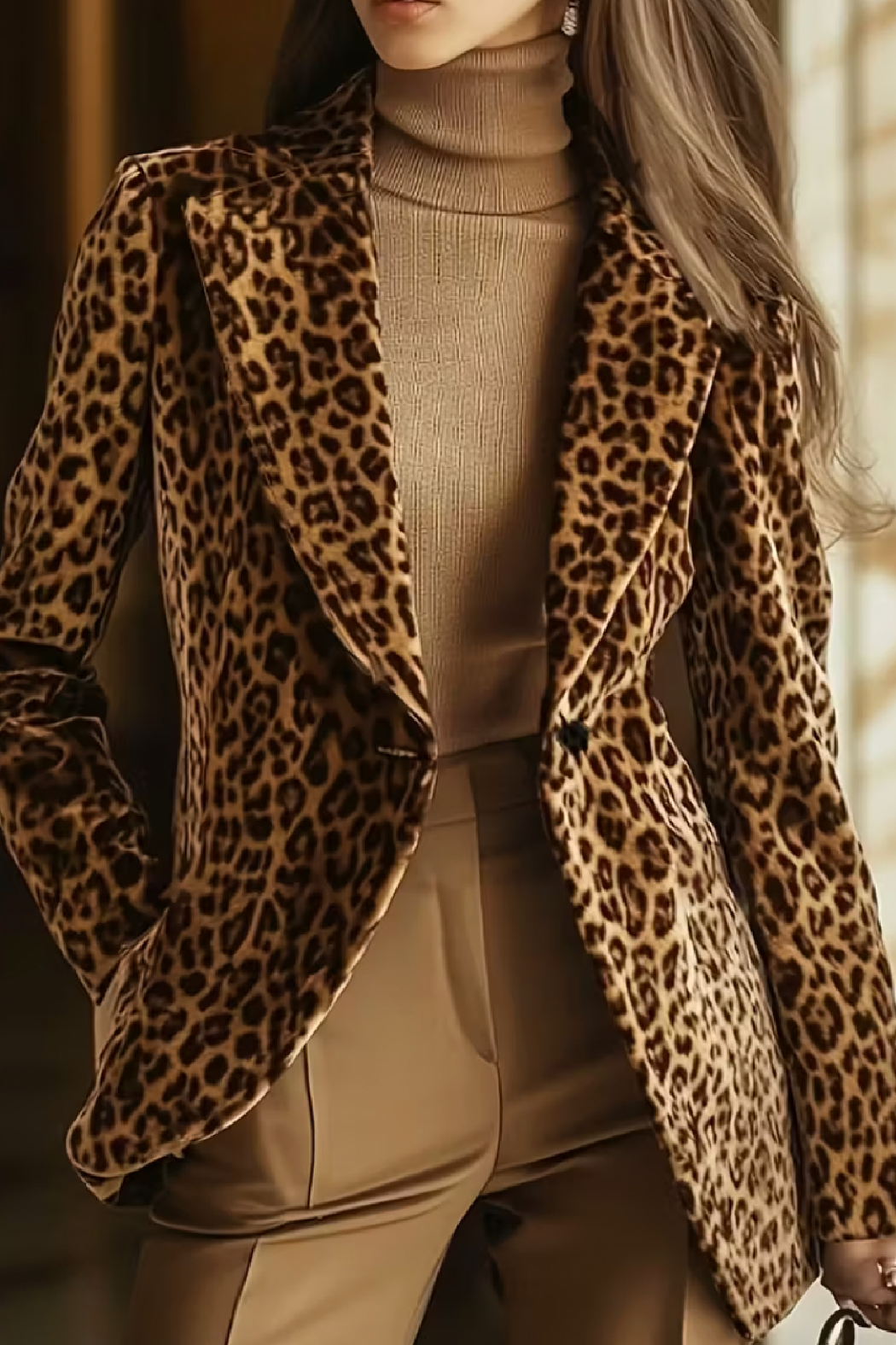 This Matriarch Leopard Blazer brings bold animal-print tailoring to your wardrobe with a plush, textured finish and structured lapels. The blazer is cut to a mid-length silhouette that layers neatly over tops and turtlenecks. Polished details and a single-button closure give it a refined, modern edge for work or night out. Wear it as a statement piece to elevate neutral trousers or a simple dress.