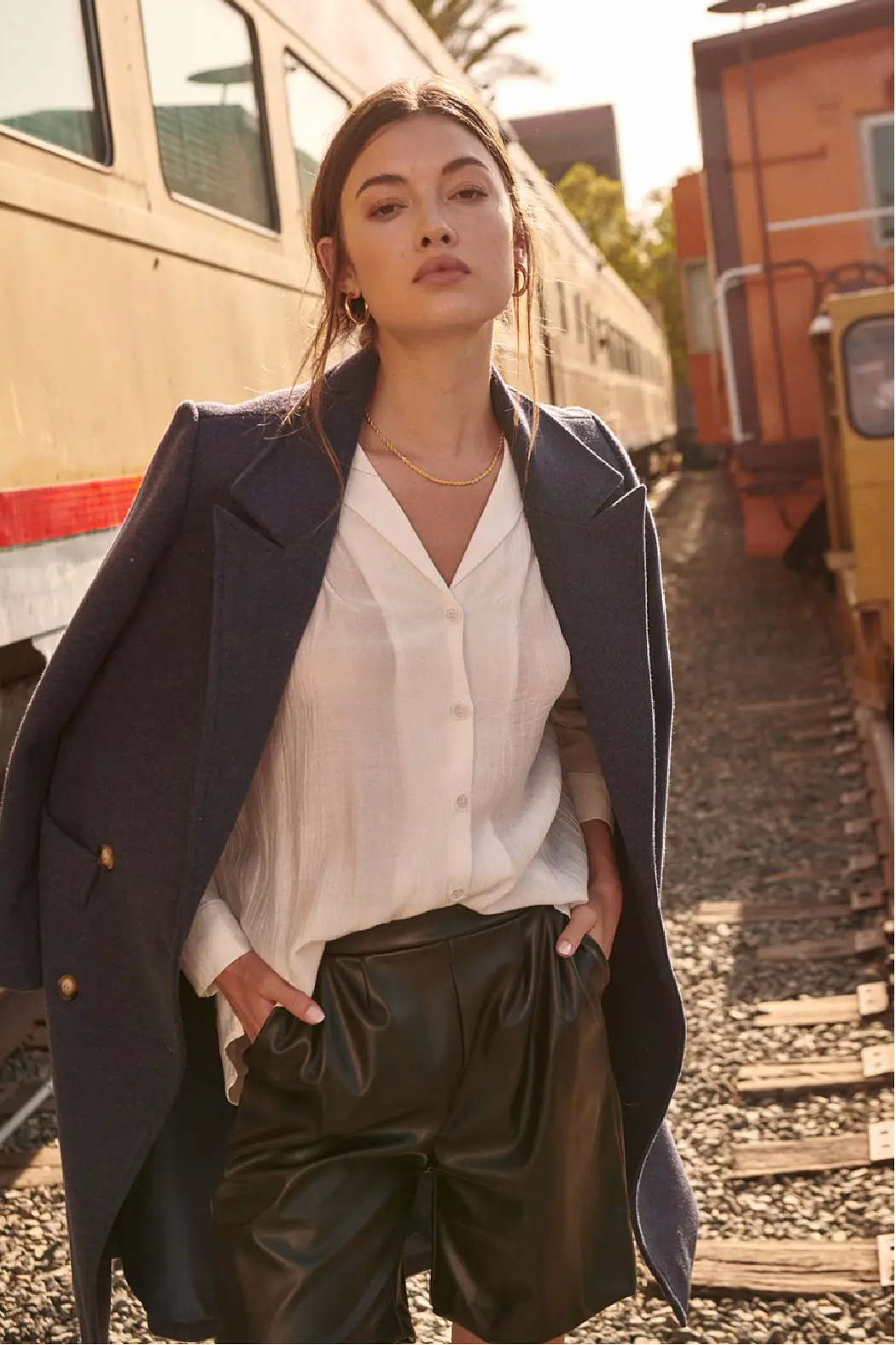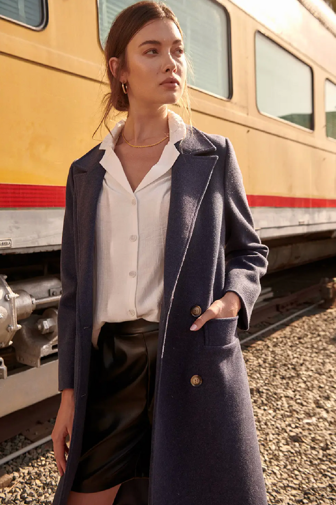 Solid Notch Lapel Collar Long Sleeve Pocket Coat