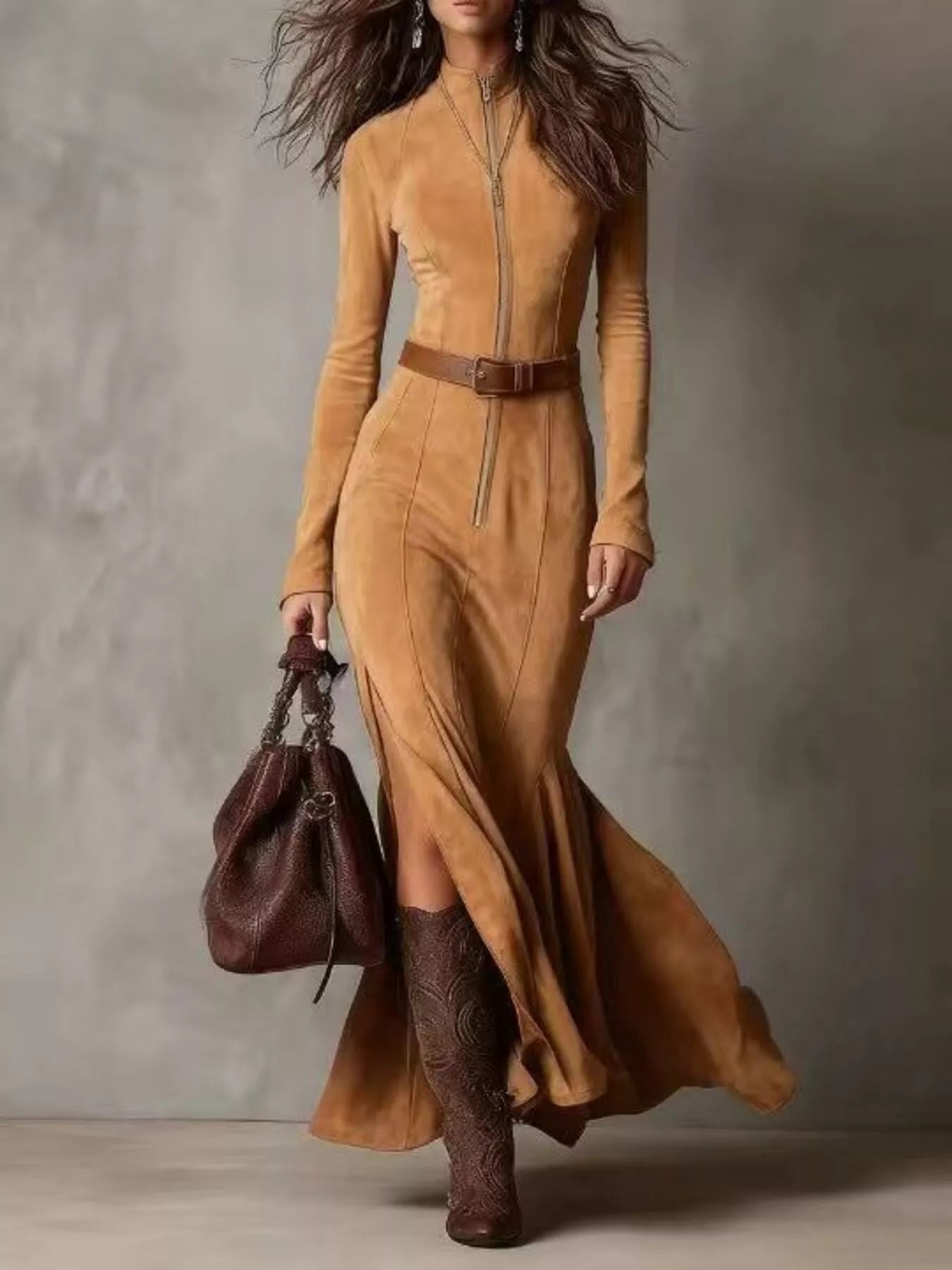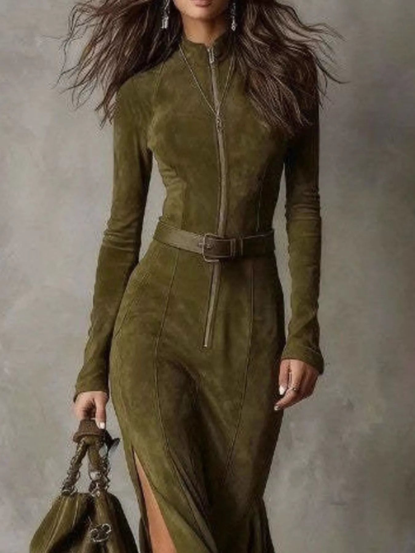 - Features:Belted,Slit,Zipper