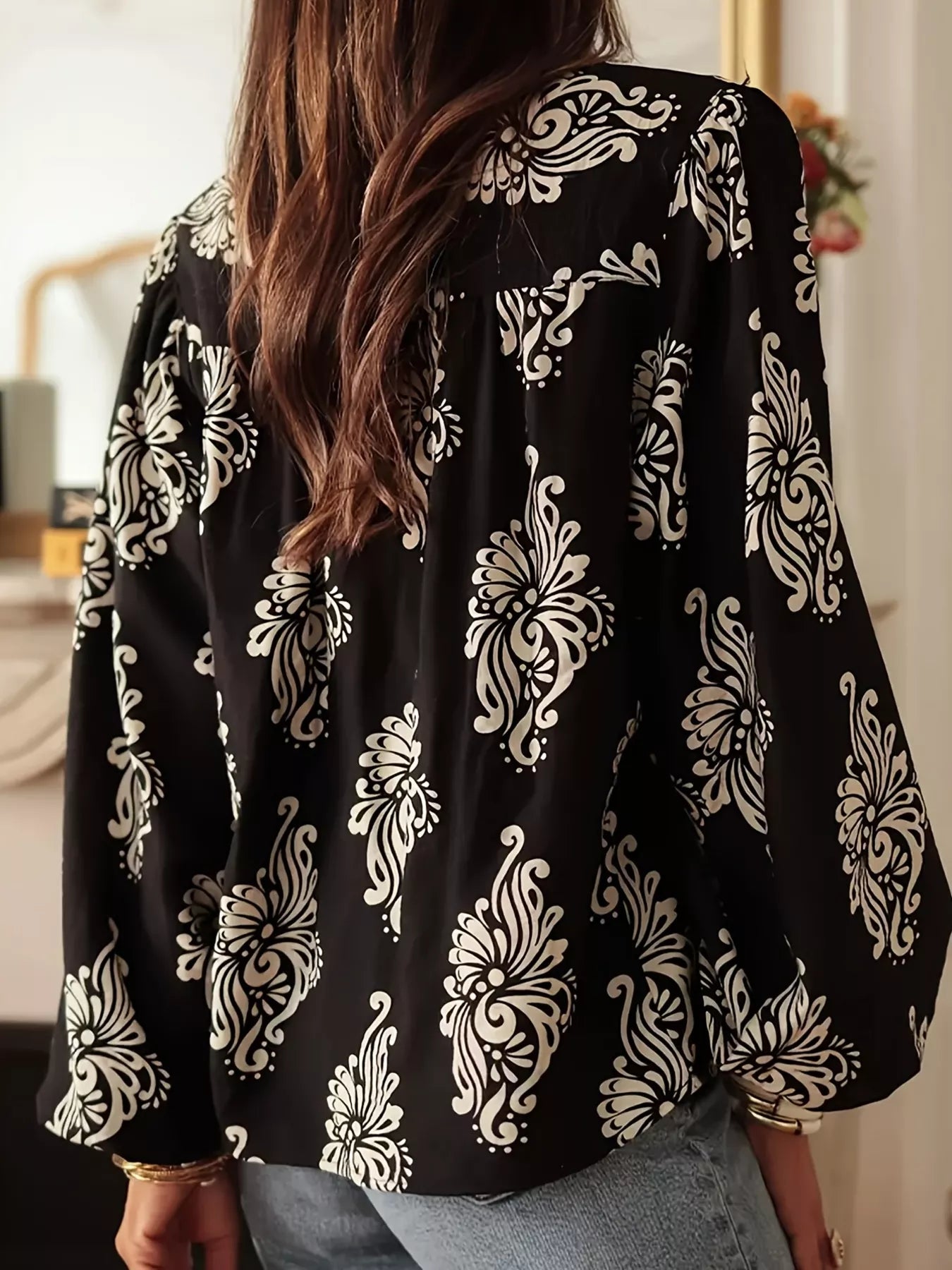 Floral Print Tie-Neck Blouse
