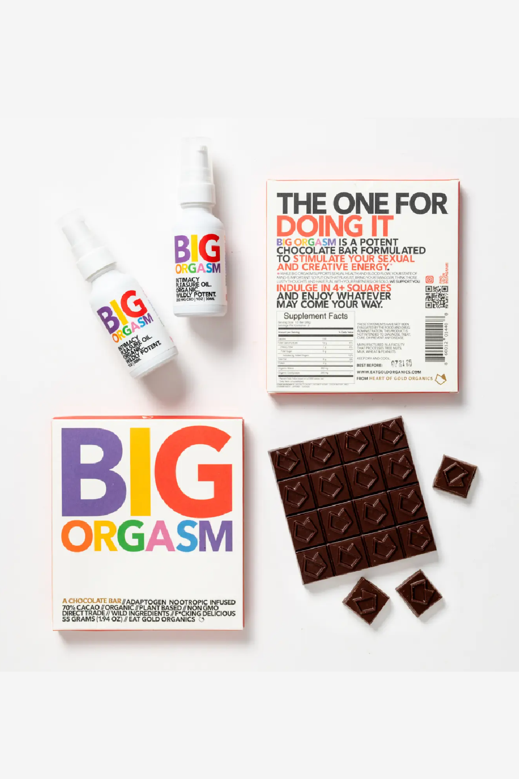 Big Orgasm is a potent, functional chocolate bar formulated to increase libido & stimulate your sexual and creative energy. Indulge in 4+ squares and enjoy whatever comes your way.