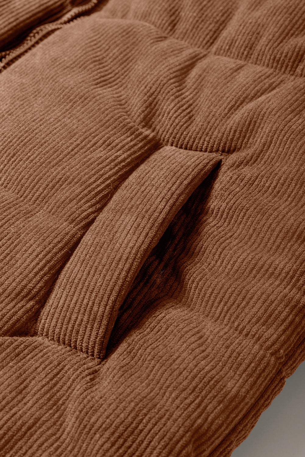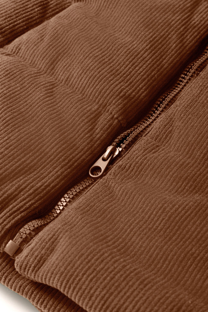 Coffee Solid Color Corduroy Puffer Vest Coat