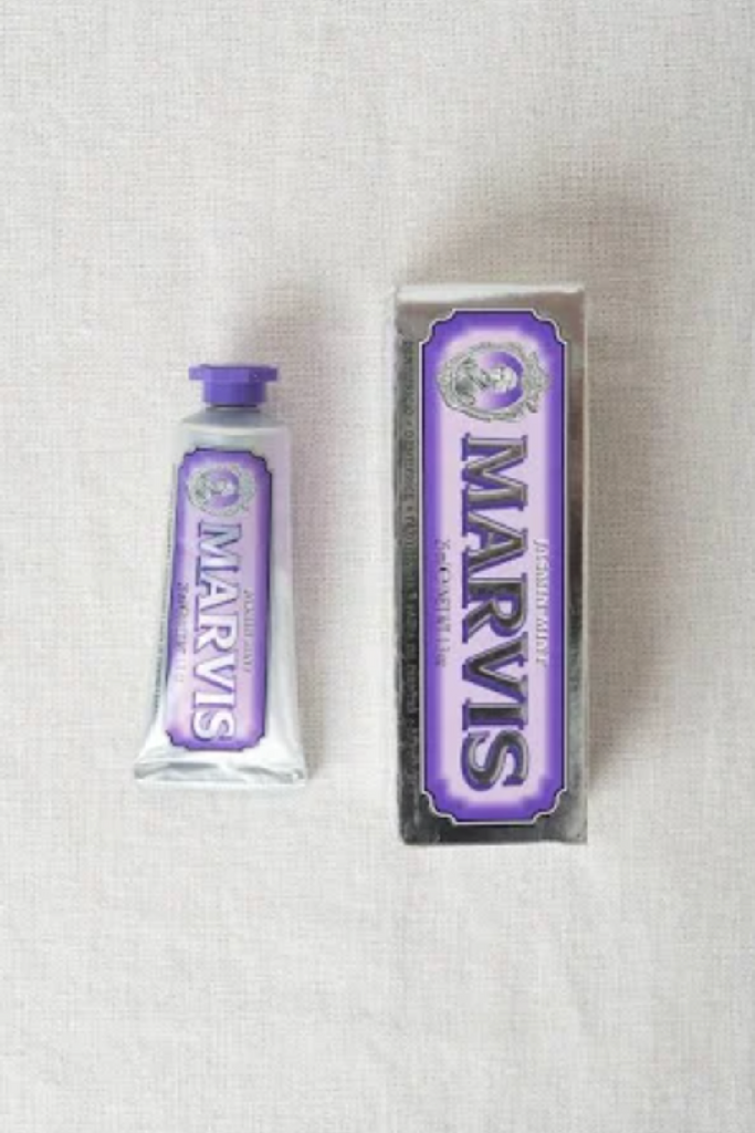 Marvis Jasmin Mint Toothpaste features an advanced xylitol and sorbitan base that gently removes plaque and other impurities from your teeth to prevent gum disease, cavities and tooth decay. Fresh flavors of mint are balanced with subtle notes of jasmine for a fresh breath and a sparkling smile all day long.