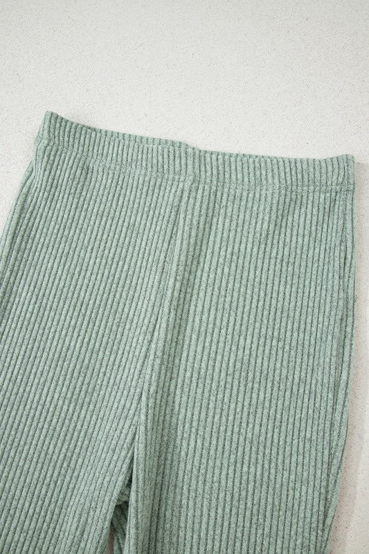 Ribbed Knit Long Sleeve Top and Leggings Set