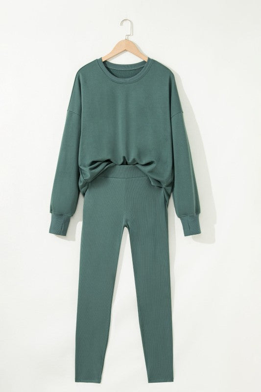 Solid Oversize Sweatshirt and Ribbed Leggings Set