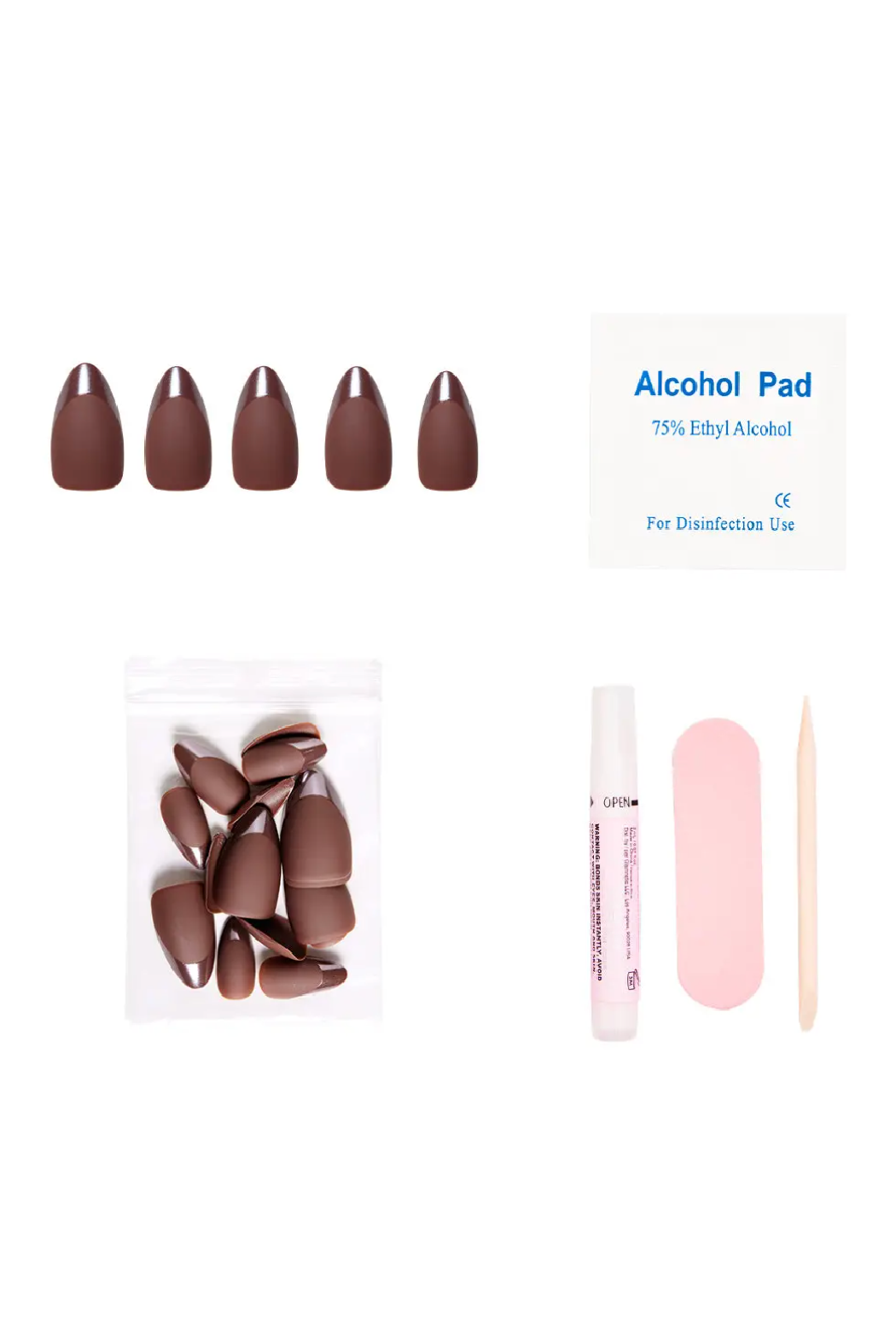 Embrace your earthy, natural vibes with The Terra Nail Set. This fashion-forward matte nail features a glossy french tip design in a stunning dark earthy-brown color that goes with anything. Plus, each nail features a tapered fit towards the cuticle to give you an elevated look, no matter what.